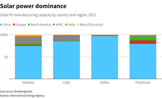 China leads in all aspects of solar energy production. We all owe China a debt of gratitude for driving down the price of solar and making it an affordable source of energy.