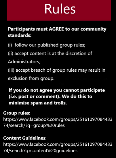 - Participation Guidelines: https://www.facebook.com/groups/2516109708443374/search/?q=group%20rules