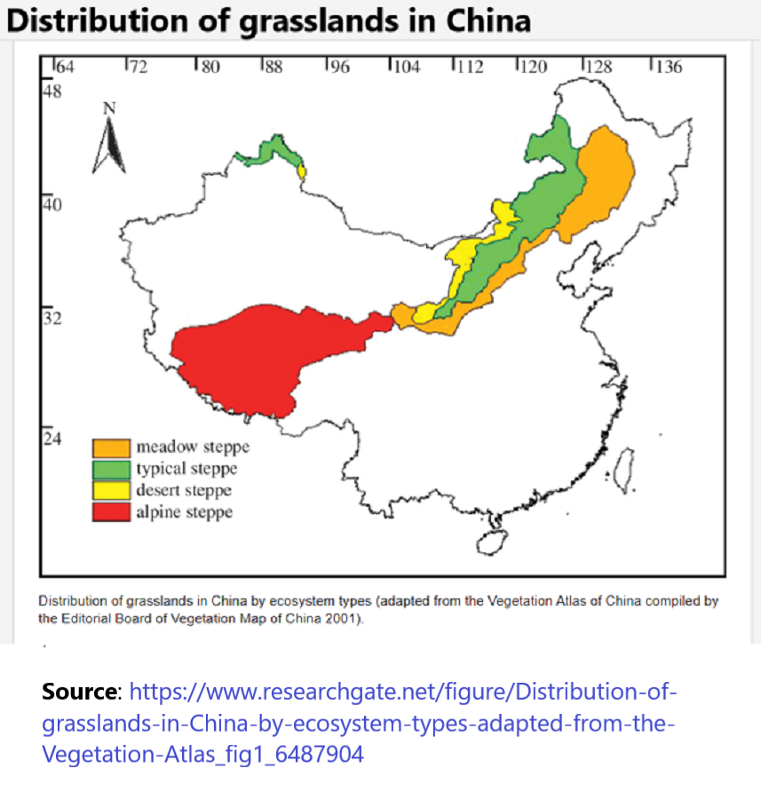 The grasslands of China are a vital ecological and social-economic resource, covering 40% of the national area and serving as an ecological barrier in the north and northwest border of China.