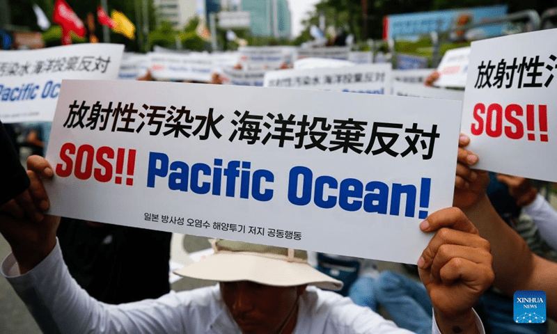 People rally to protest against Japan’s planned discharge of radioactive wastewater in Seoul, South Korea, June 12, 2023 from crippled Fukushima Daiichi nuclear power plant into the Pacific Ocean(Photo: Xinhua)