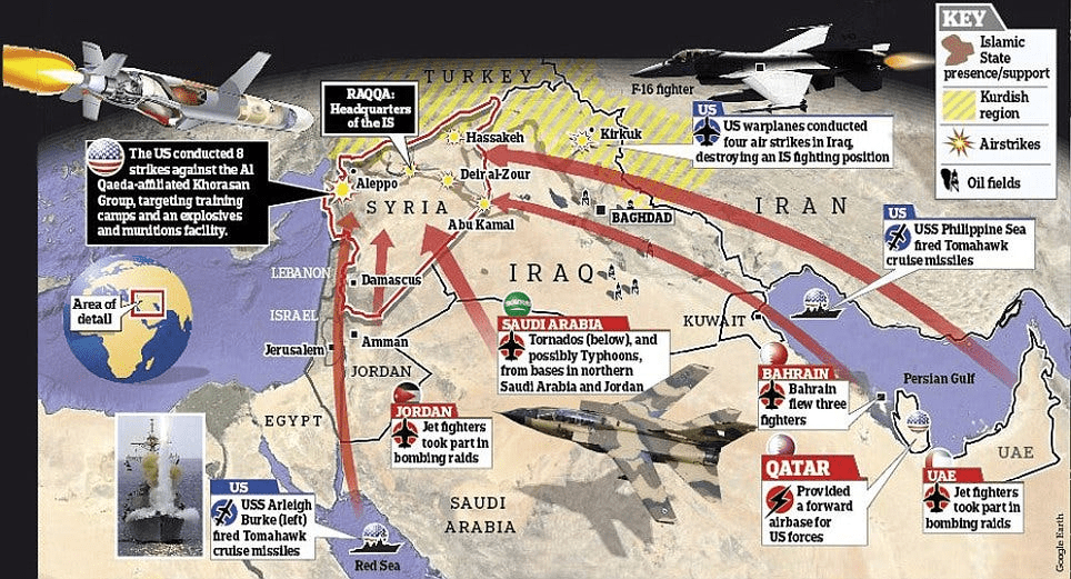 NATO military interventions demolished Libya and threatened to replicate itself in Syria with a weaponized Al-Qaeda managed by the CIA, MI6 (via the White Helmet operation), and Turkish/Saudi proxies to carry out the first phase of this scorched earth program.