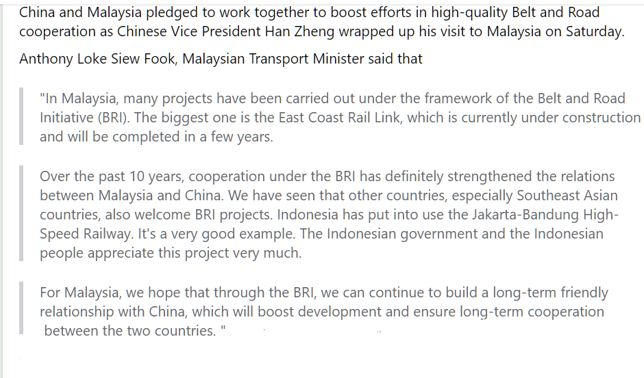 China and Malaysia have pledged to boost high-quality BRI cooperation between the two countries.