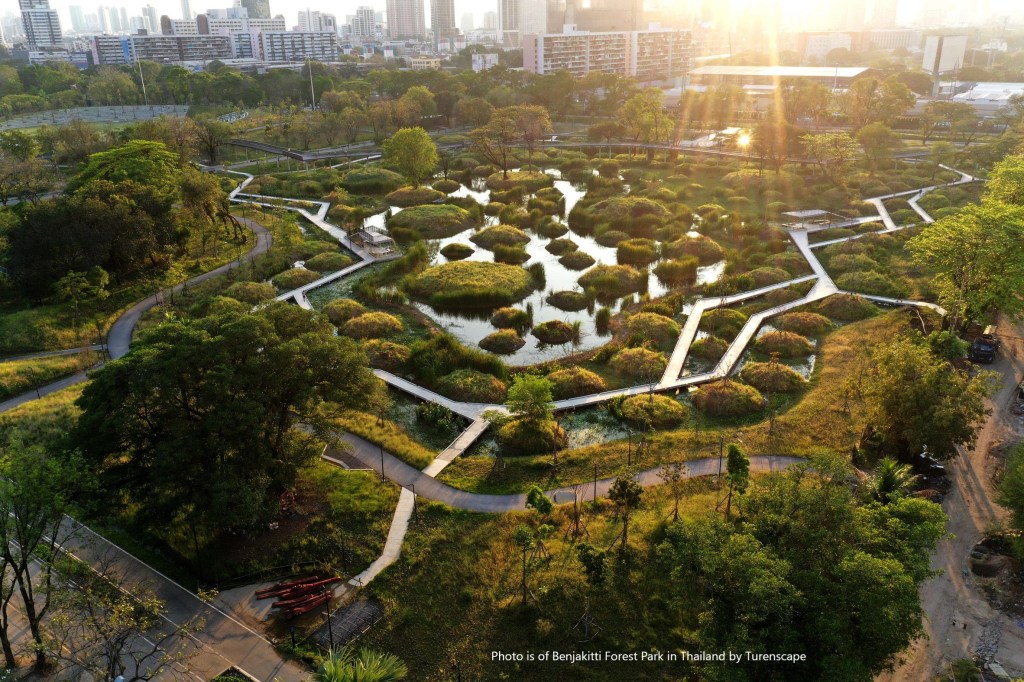 Yu and his studio have put these theories into practice in projects like Sanya Dong’an Wetland Park in China and Benjakitti Forest Park in Thailand, both projects that saw the conversion of dump sites and polluted waterways in urban centres into conservatory and recreation sites.