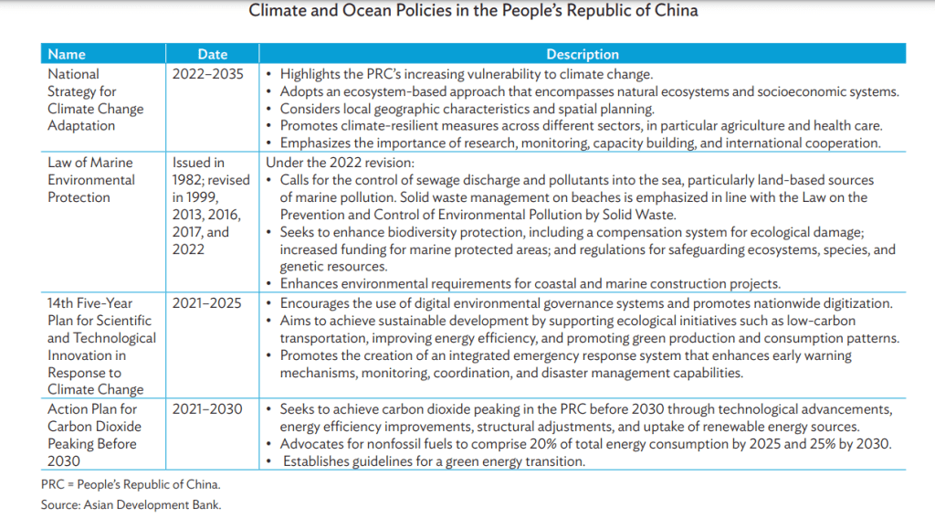 Focused on the People’s Republic of China (PRC), this article looks at how climate change impacts coastal ecosystems and marine biodiversity. In an era of global connectivity and shared environmental challenges, the linkages between oceans and climate change are becoming increasingly apparent. Oceans have the great potential to exacerbate or mitigate climate change and its related impacts, depending on the policies in place.