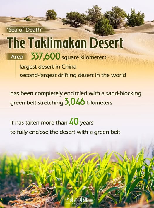 China recently completed a 3,046-kilometer green barrier around the Taklimakan Desert, aiming to combat desertification through the cultivation of drought-resistant plants.