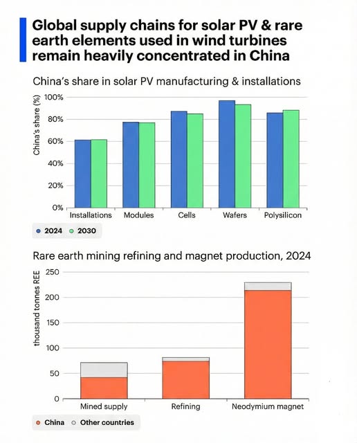 Global clean energy supply chains are becoming a central issue in the energy transition, and the data shows one clear reality: China dominates the key technologies the world relies on to decarbonize. This has lowered costs and accelerated clean energy adoption around the globe